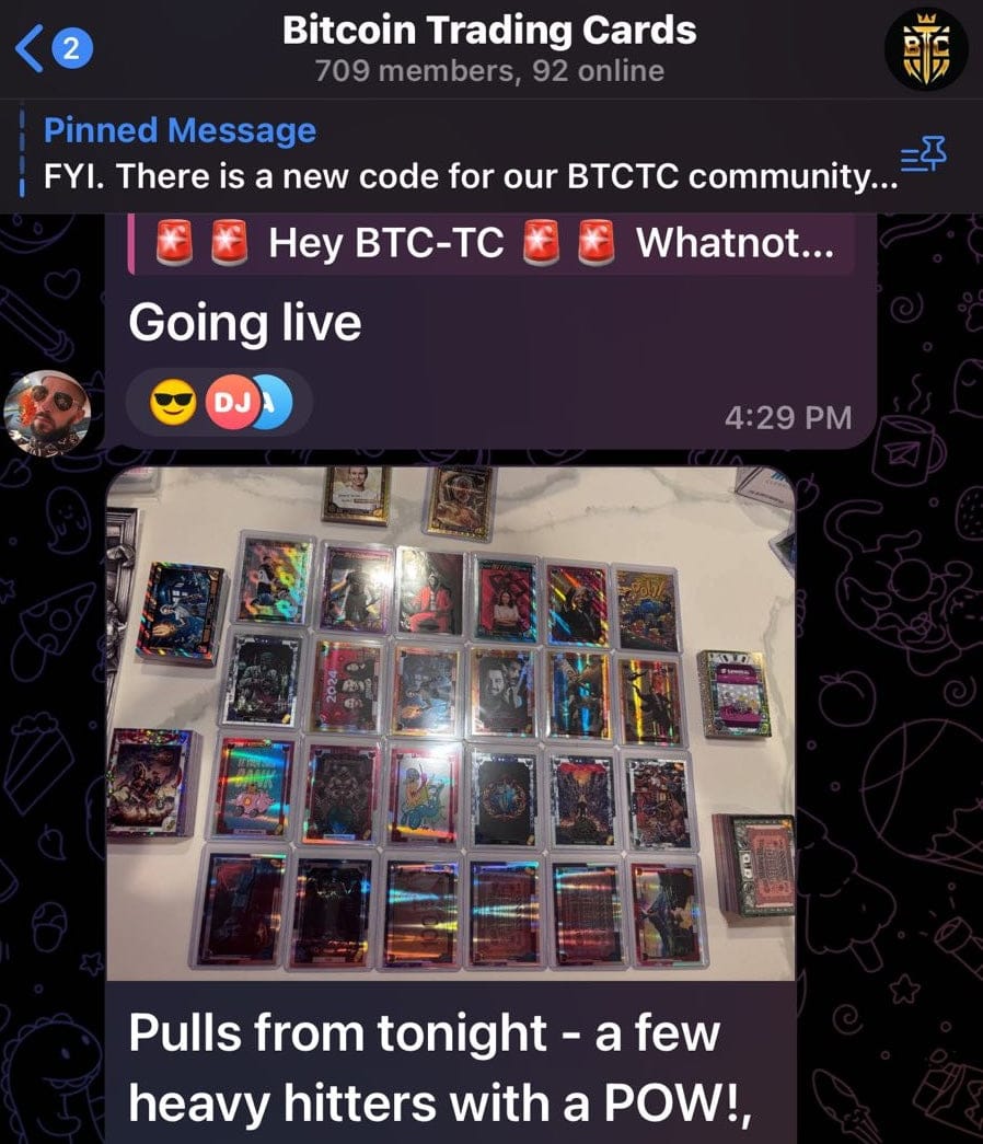 For those that love collectables and Bitcoin, this is a great project! With the scarcity of the prints it's an absolute rush to find super rare cards and share with a great community of collectors/Bitcoiners. If you're looking for a hobby to pass the time until generational wealth from your Bitcoin stack, then highly recommend grabbing a box joining us