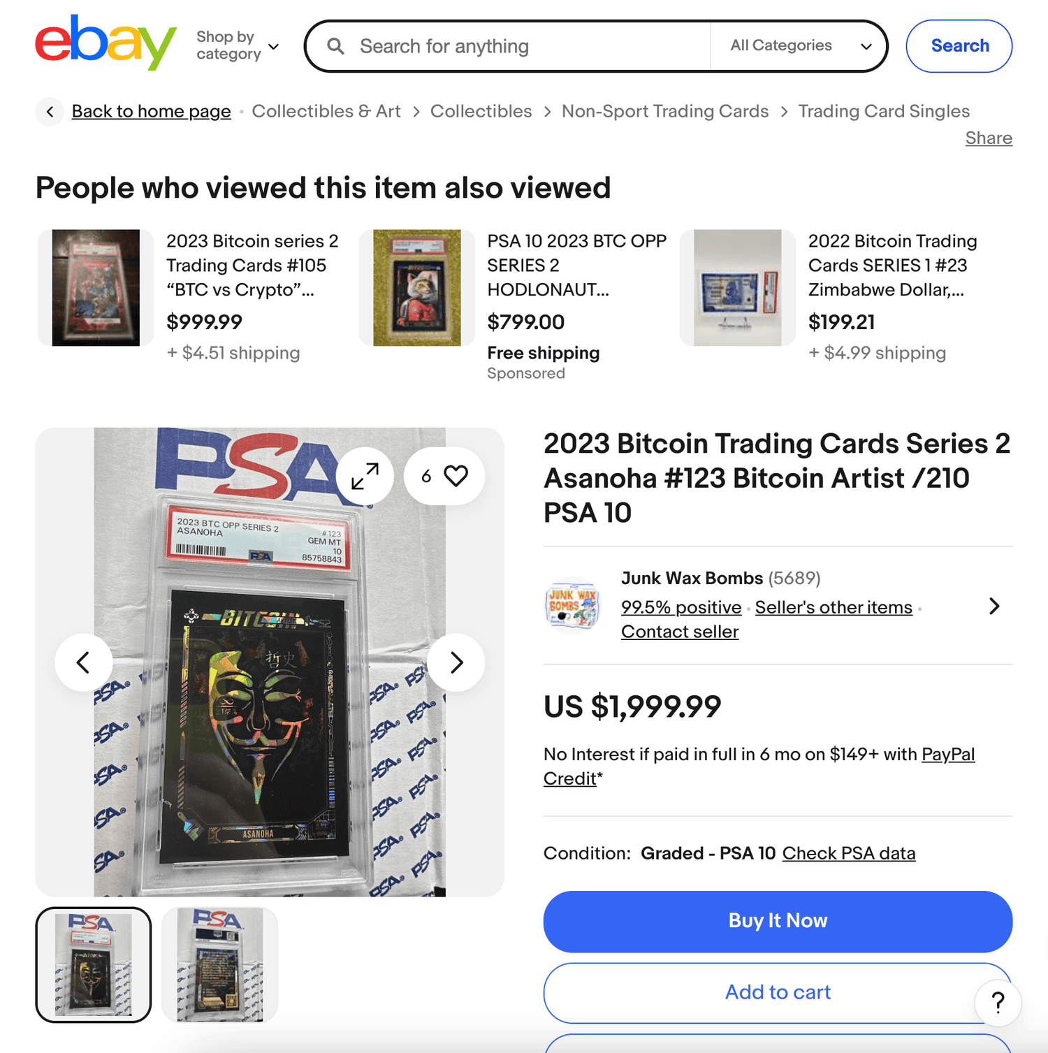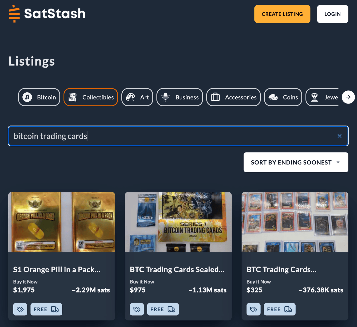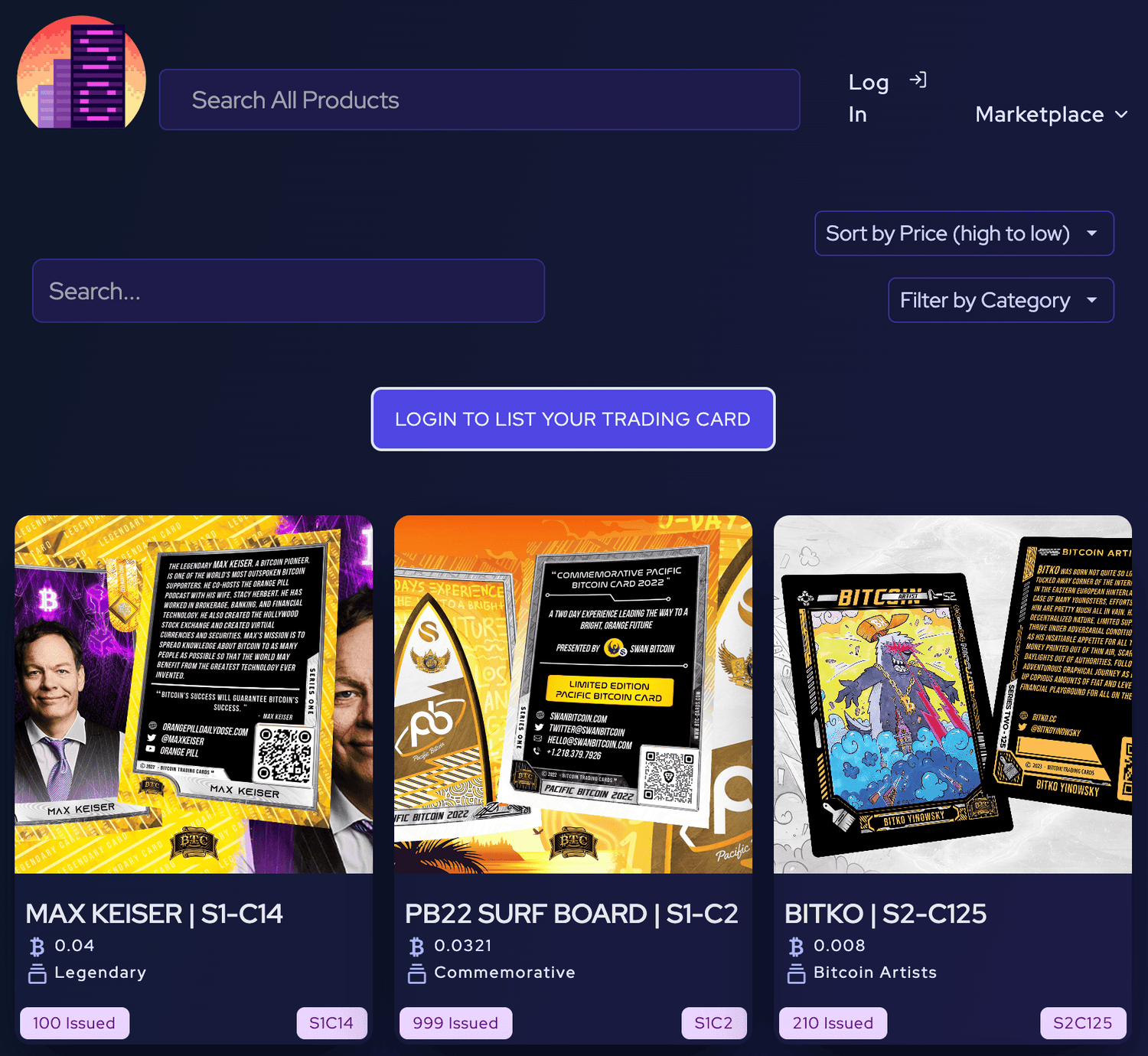 Bitcoin art & collectible auction house that features a dedicated Bitcoin Trading Cards marketplace.