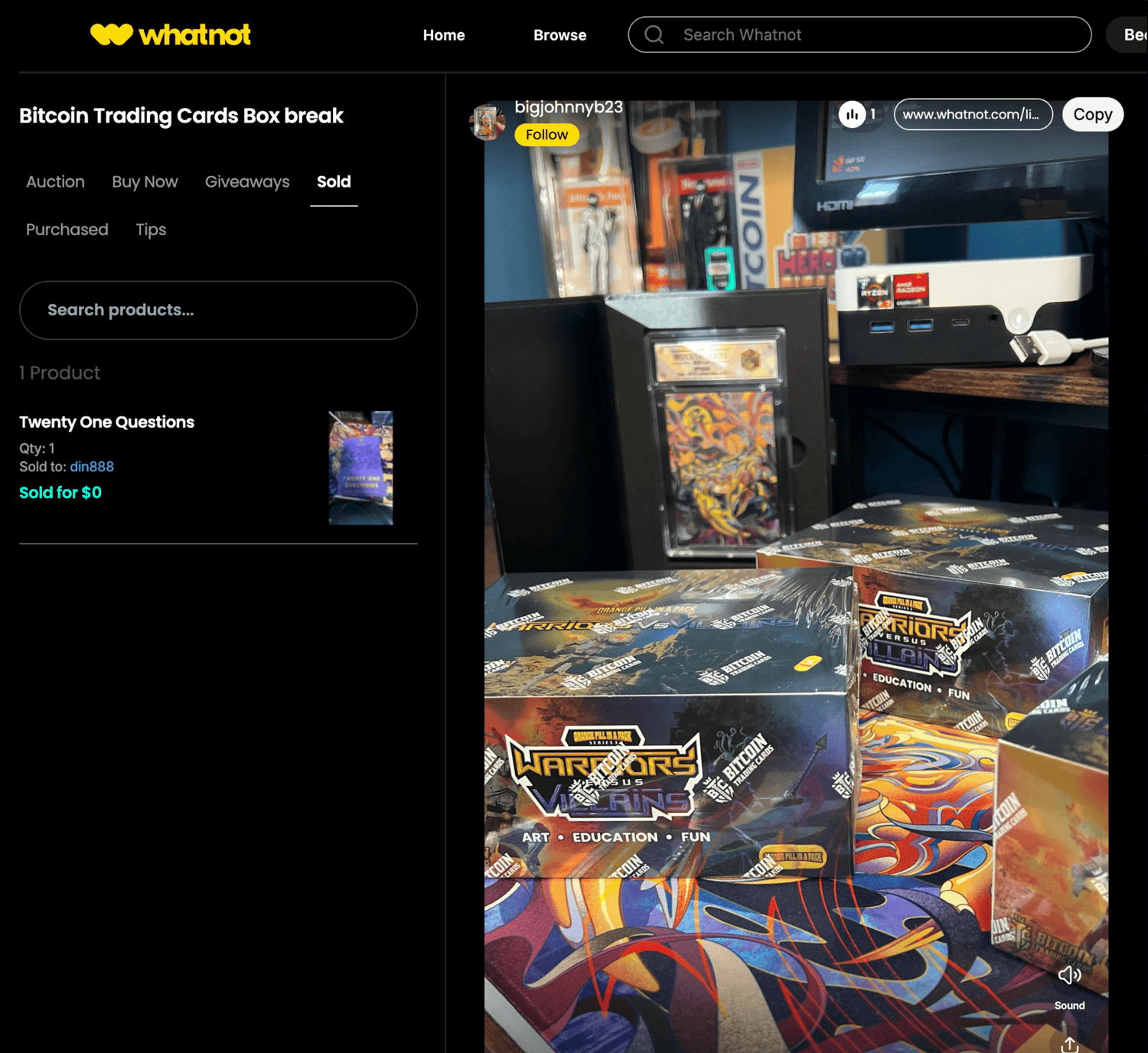 Whatnot is a social marketplace and live-streaming platform that allows users to buy and sell unique items. It's known for its real-time auctions and community feel.